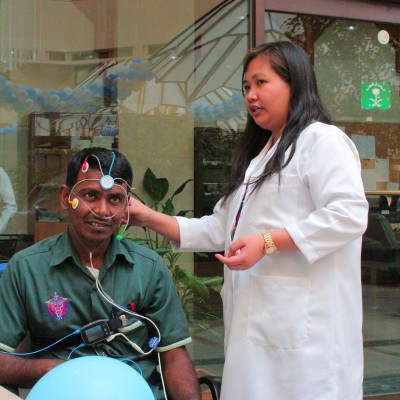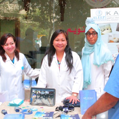 أجرت مستشفى جامعه الملك عبد العزيز بجده معرضا عن افتتاح ” وحده خدمه المجتمع “، حيث وقع الحدث في الدور الأرضي بمستشفى جامعه الملك عبد العزيز من الساعه الواحده ظهراً وحتى الساعه الثالثه عصراً. شاركت الإدارات والمنظمات المختلفه على الحدث. وقد أعطي مركز طب وبحوث النوم فرصه في المشاركه في هذا الحدث لعرض ما يمكن تقديمه من خلال العمل الجماعي. واستطاع مركز طب وبحوث النوم تقديم مواد إعلامية من خلال لوحه إعلانات صغيره وضحت فيها أهم أسباب مشاكل النوم، ومن خلال كتيبات ومنشورات توضح أسباب أمراض النوم وكيفية التشخيص والعلاج. وقام المركز باستئجار المتطوعين للقيام بدور مريض كما أنه حقيقي وتركيب جهاز فحص النوم عليه. أجاب فريق عمل مركز طب وبحوث النوم عن استفسارات المشاركين والحاضرين على طبيعه عمل جهاز فحص النوم وما هو مختبر النوم وماذا يفعل المريض وكيف يمكن الحصول على موعد.
